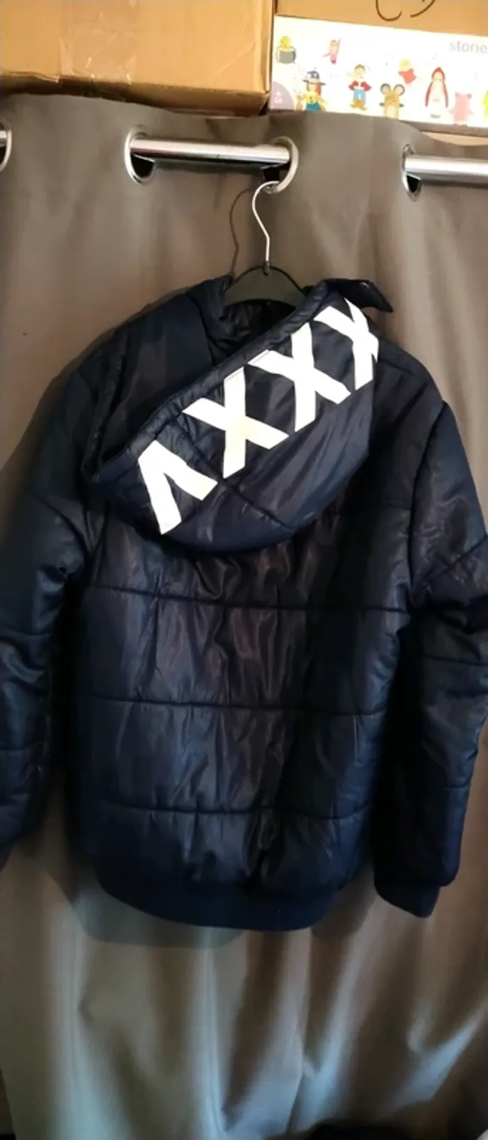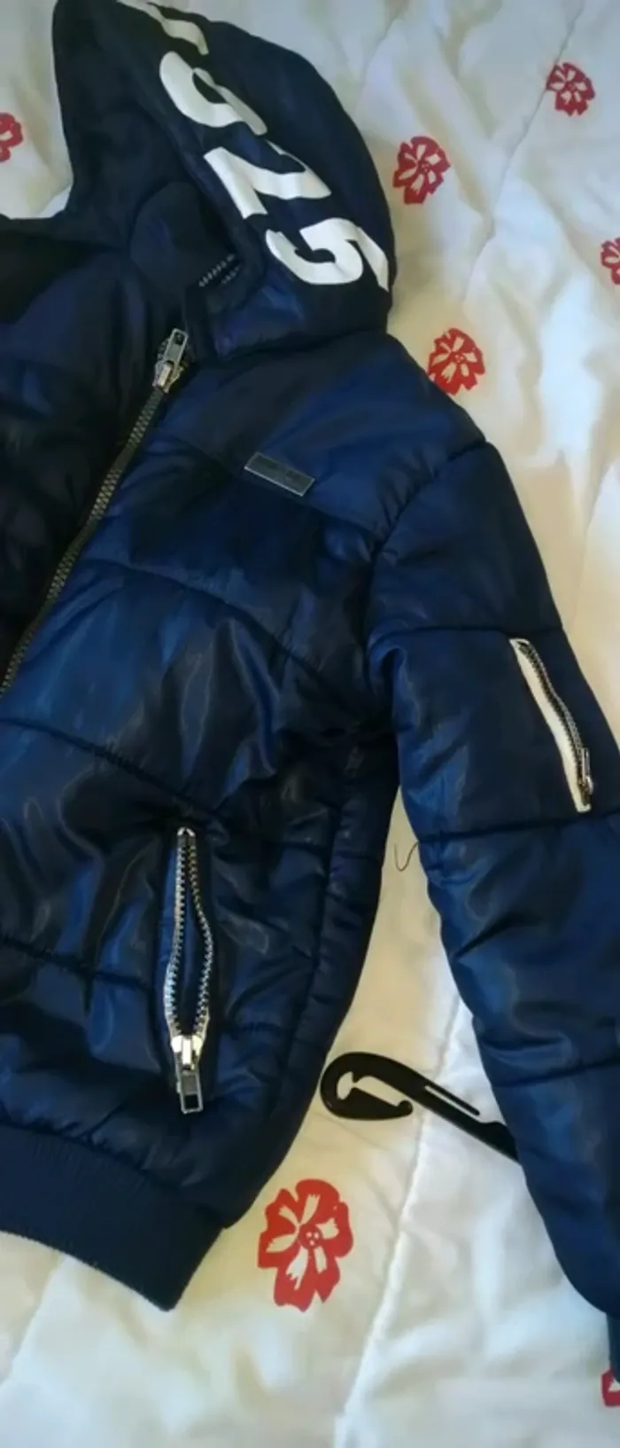 Joli blouson assez long et doublé motif sur la capuche nombreuses poches imperméable de très bonne qualité très peu porté en excellent état #blouson #blousongarçon #bleu #kiabi #xs #14ans #midole #midolegarçon #midolegarcon14ans