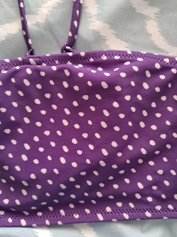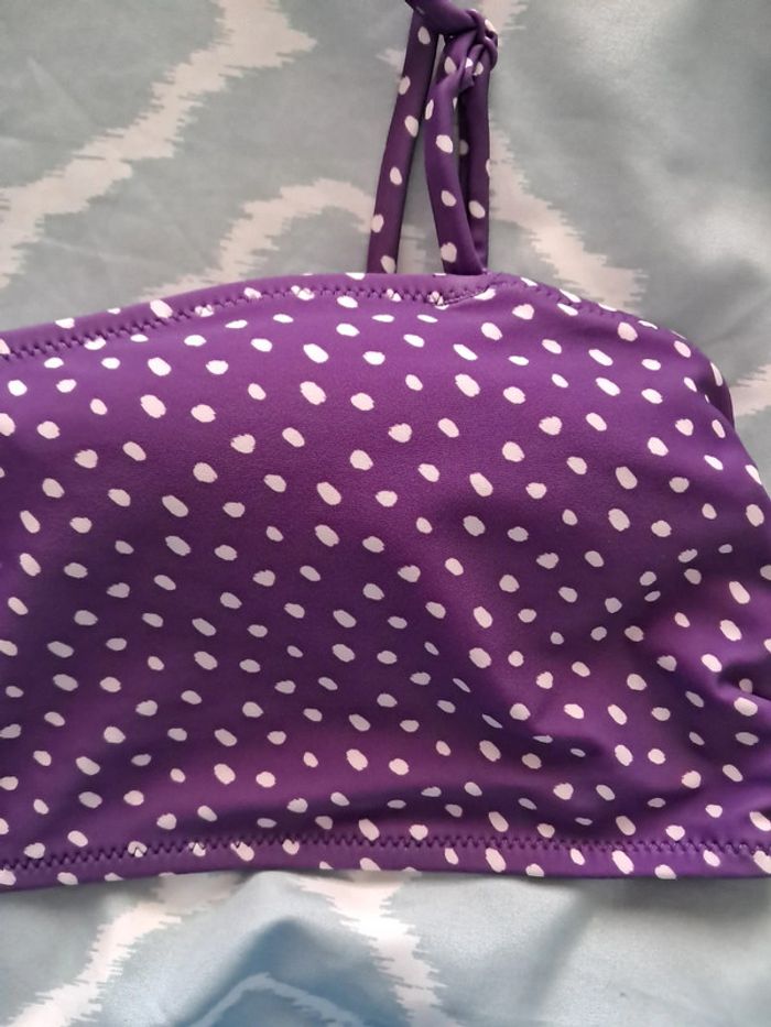 Haut de maillot de bain bandeau neuf violet avec pois blanc. Bretelle amovible. Jamais porté. Coussinet amovible. #fanny91410_femme