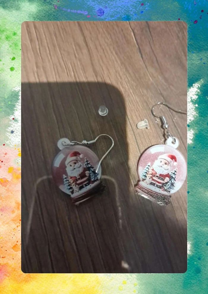 Adorables Boucles d'Oreilles Père Noël Boule à Neige 🎅🎁 - photo numéro 1