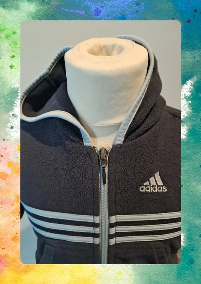 Veste à capuche Adidas, taille 12 mois, en polaire bleu marine. Chaud et confortable, parfait pour les journées fraîches. Capuche douce, coupe sport et pratique pour bouger facilement. #AdidasBébé #VesteBébé #12mois #Polaire #BleuMarine #VintedKids #ModeBébé #VêtementsEnfant #LookSport #VesteÀCapuche #fanny91410_garçon12mois