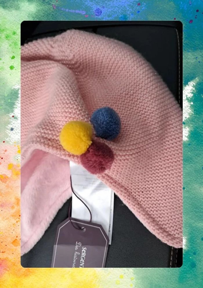 🧢 Bonnet rose doublé polaire - Sergent Major Taille : T1 Neuf, avec étiquette. Très doux, idéal pour garder bébé bien au chaud. 🎀 Pompons décoratifs, attache sous le menton. #BonnetBébé #Hiver #SergentMajor #AccessoiresBébé #NeufAvecÉtiquette #DoubléPolaire
