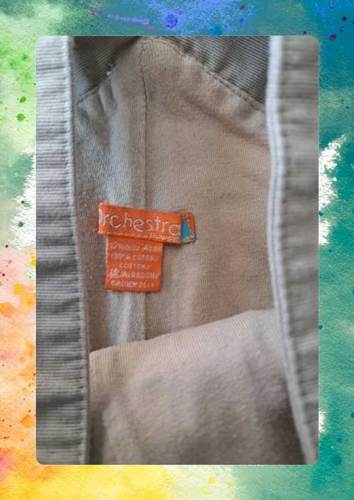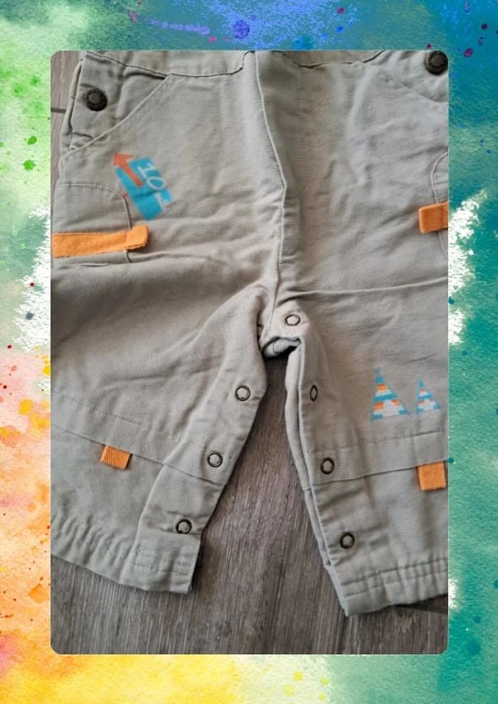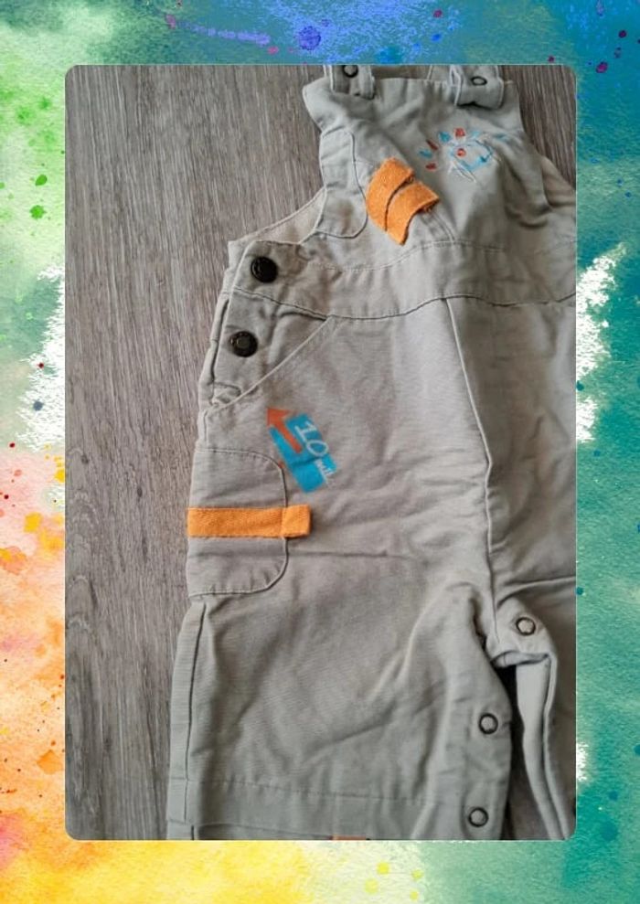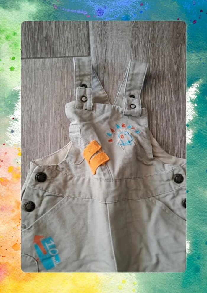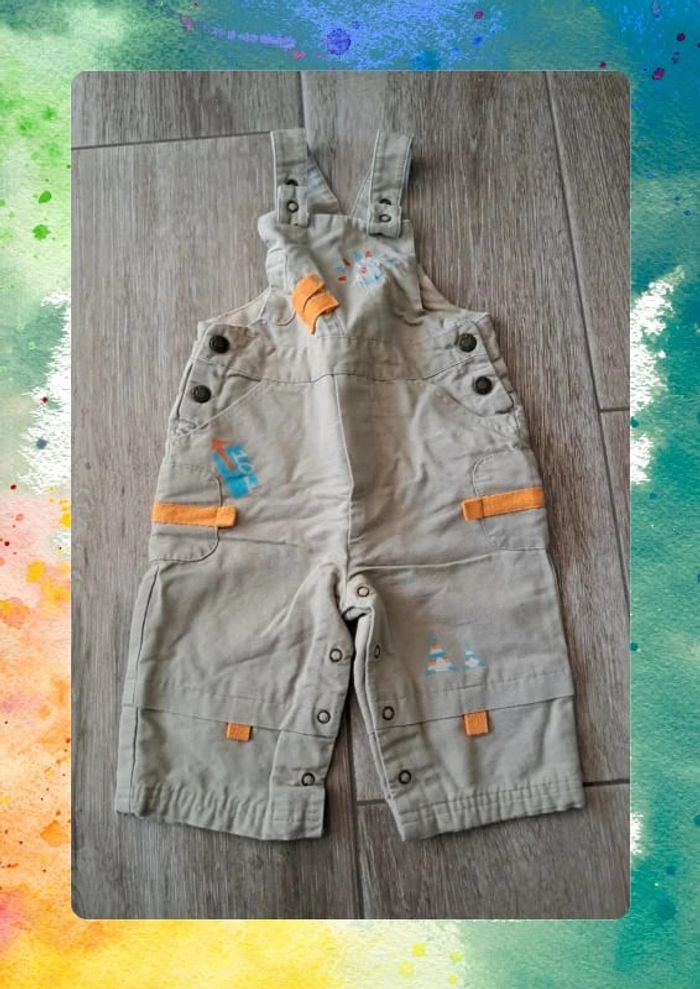 Salopette beige pour bébé, ornée de jolis détails brodés colorés (flèches, motifs orange et bleu). Pratique grâce à ses boutons-pression à l’entrejambe et sur les bretelles pour un change facile. Petites poches décoratives et finitions en tissu orange pour un look dynamique. 100 % coton – douce et confortable, idéale pour les premiers mois de bébé. #fanny91410_garçon12mois #Orchestra #SalopetteBébé #12mois #VêtementsBébé #ModeBébé #SecondeMain #BébéStyle #LookBébé #MamanOrganisée #BébéConfort #VêtementsEnfant #VideDressingBébé