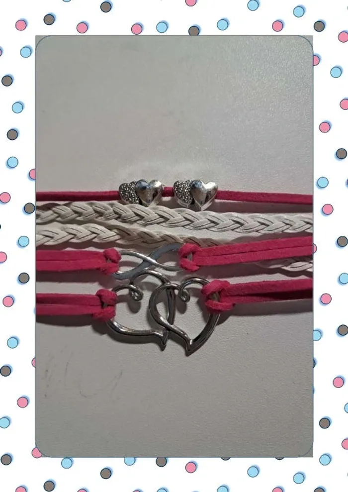 Bracelet composé de 3 bracelets roses et 2 blancs. Longueur ajustable. Neuf. Motif coeur. #fanny91410_bijou