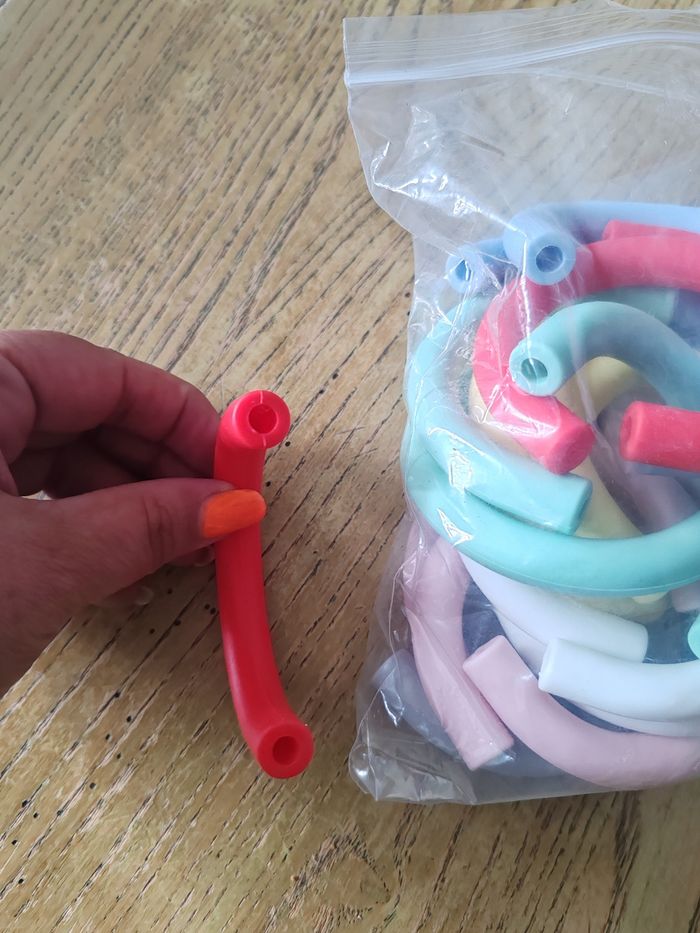 21 tubes en U pour fabrique d'anneaux de dentition en silicone de qualité alimentaire sans bpa - neufs 3 rouges 3 blancs 3 roses pâle 3 gris 3 jaunes pâle 3 bleus ciel 3 verts eau