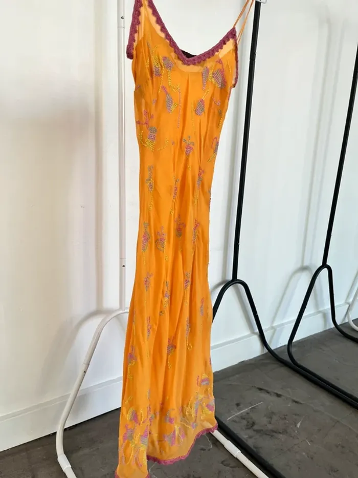 Robe longue brodée en soie orange AAAYAL - photo numéro 1