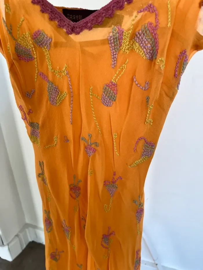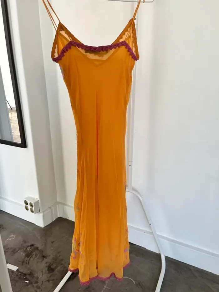 Robe longue brodée en soie orange AAAYAL - photo numéro 3