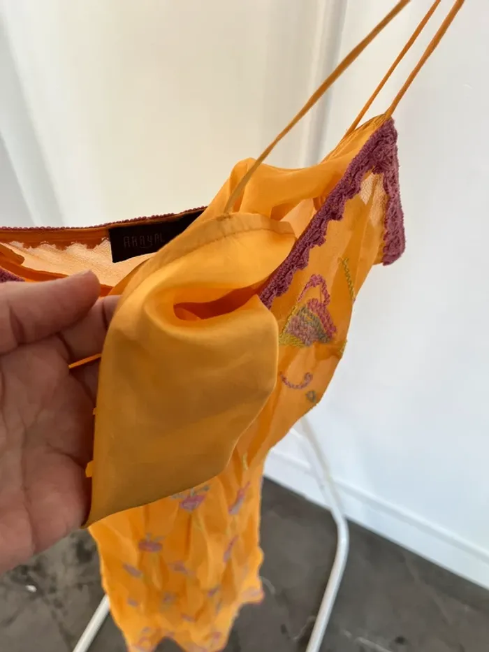 Robe longue brodée en soie orange AAAYAL - photo numéro 4