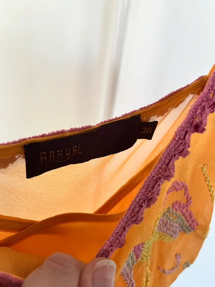 Robe longue brodée en soie orange AAAYAL - photo numéro 6