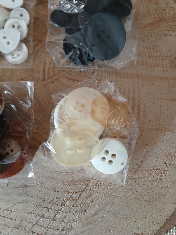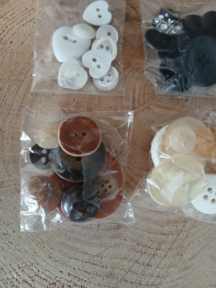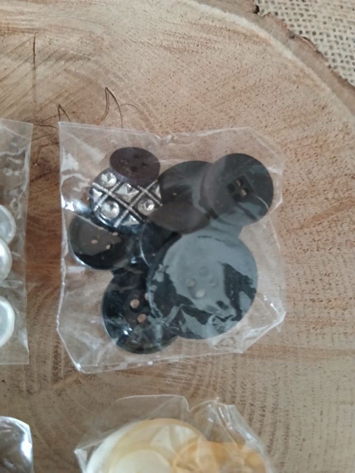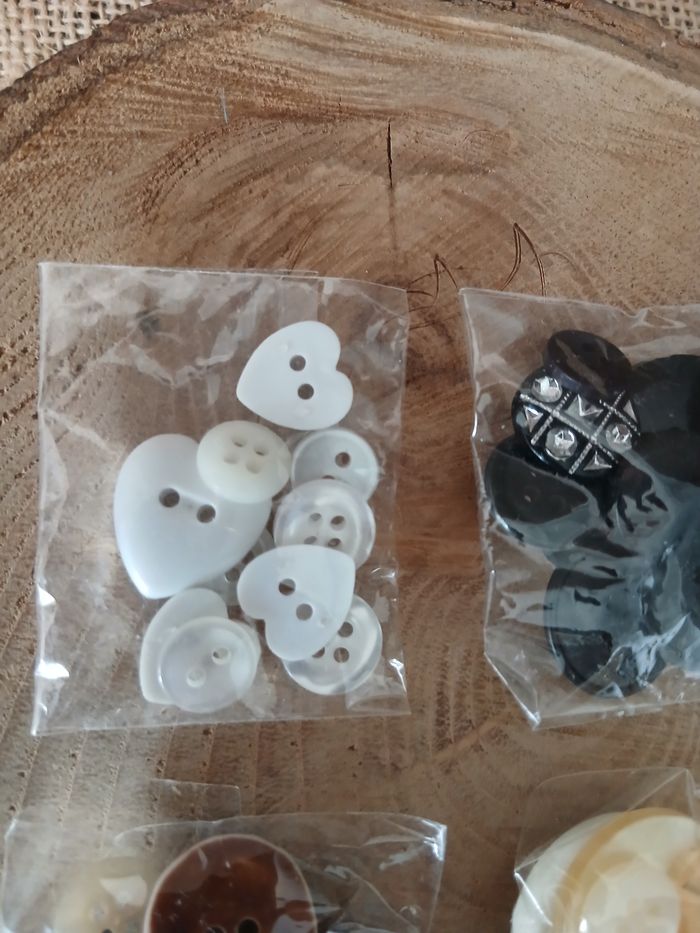 Lot de 4 sachets de boutons. D'autres tissus ruban boutons perles ect de dispo ds mon dressing n'hésitez pas à jeter un coup d'œil ou à me demander.