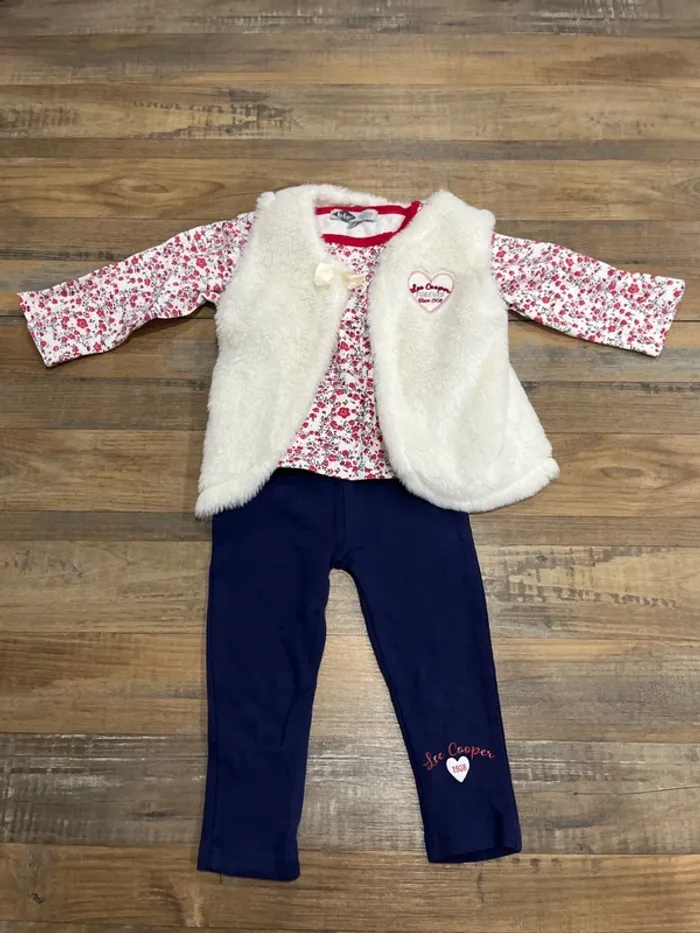 Ensemble t-shirt manches longues, legging et gilet sans manches tout doux Marque Lee Cooper Taille 86 cm / 24 mois #sf_24mfille N2