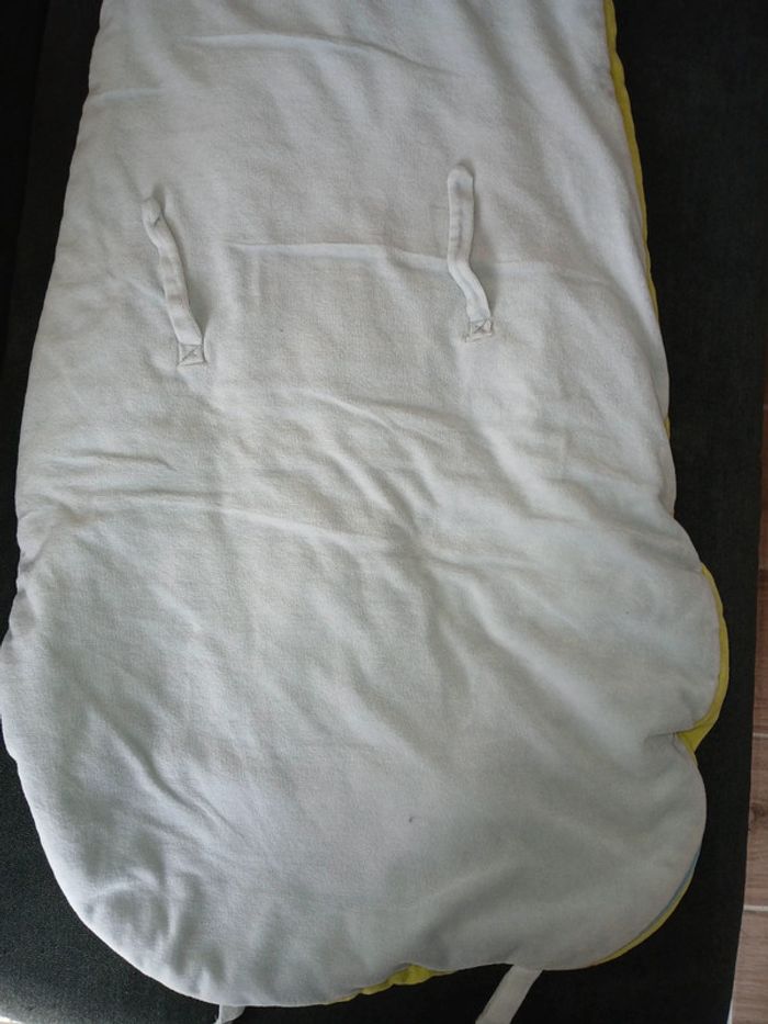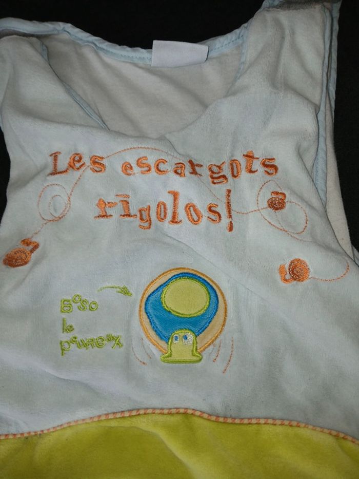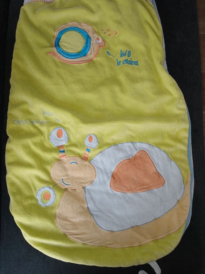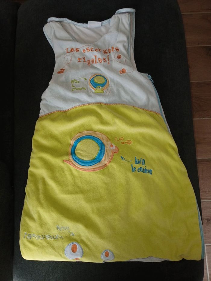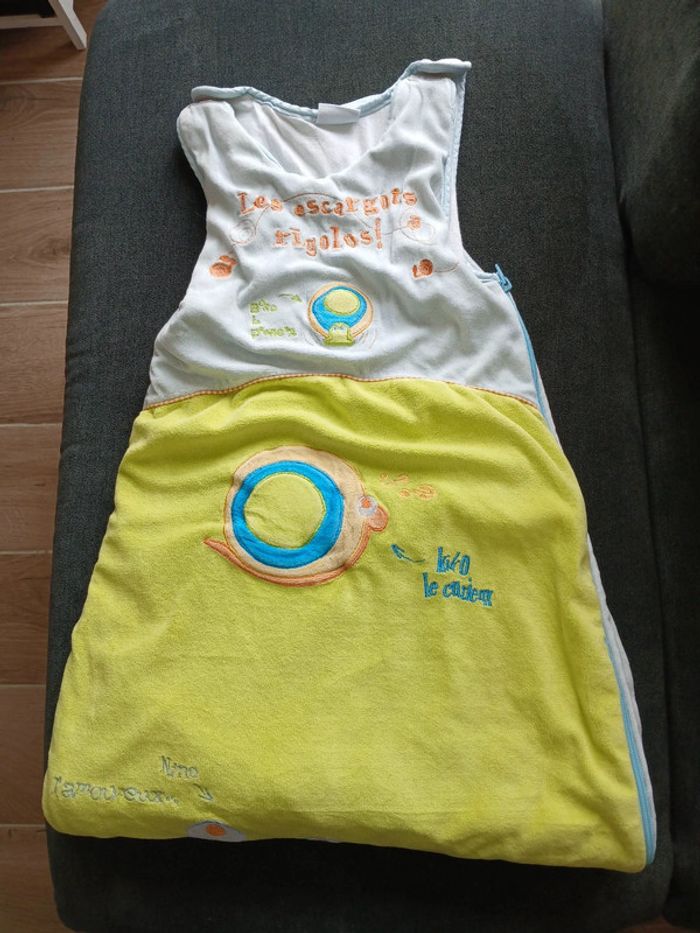 Gigoteuse sans manches. En velours. Facile à enfiler grâce à sa longue fermeture à glissière sur le côté et dans le bas. Scratchs sur les épaules. Lien d'attache pour diminuer la longueur.