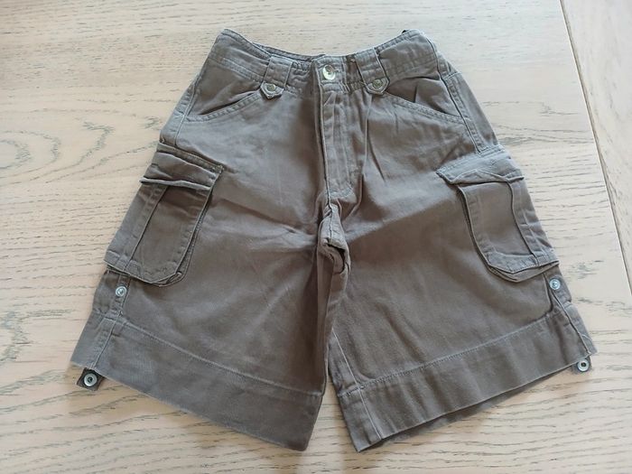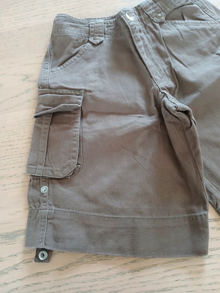 Ceinture réglable. Poches. Possibilité de retrousser les jambes. Fermeture éclair et bouton. Passants.