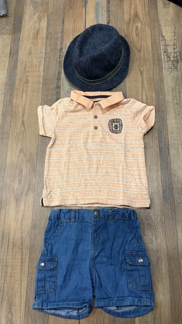 Ensemble t-shirt manches courtes, short et chapeau Taille 80 cm / 18 mois Sans trou ni tache #sf_18mgarçon