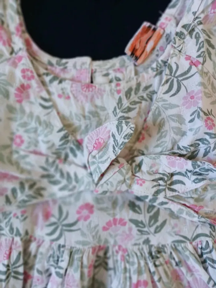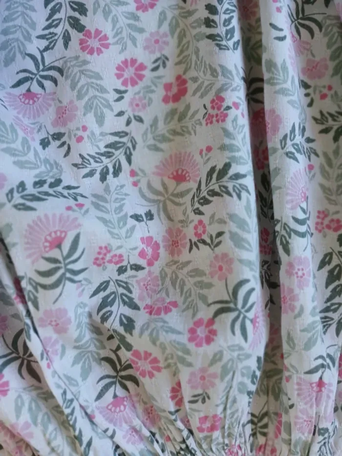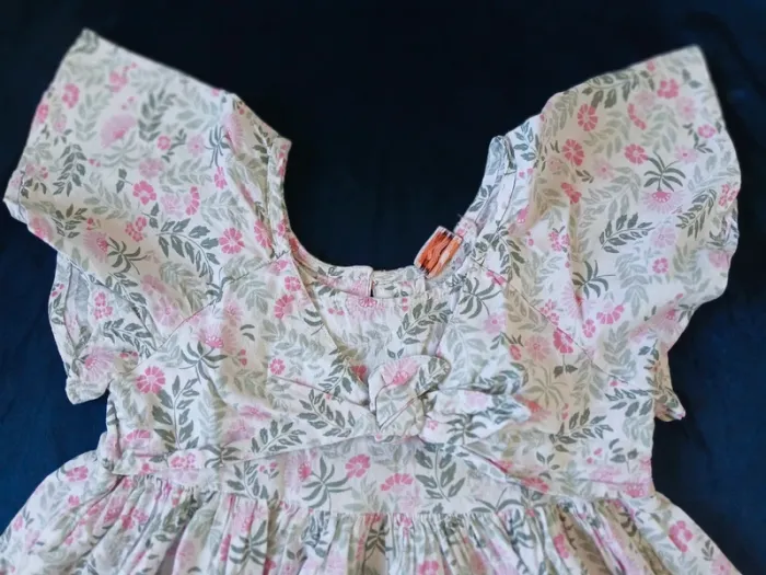 Manches courtes. Bouton dans le dos. Nœud devant.