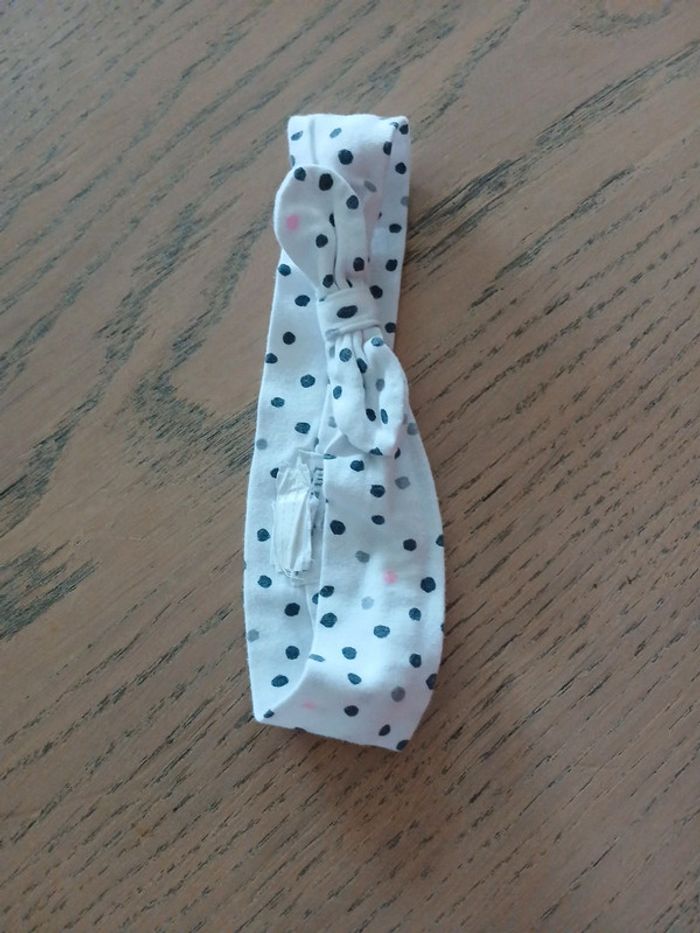 Robe fermeture boutons et pressions. Legging taille élastiquée. Motif dans le bas d'une jambe. Vendu avec le bandeau assorti.