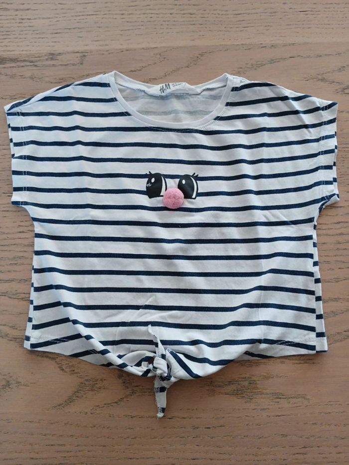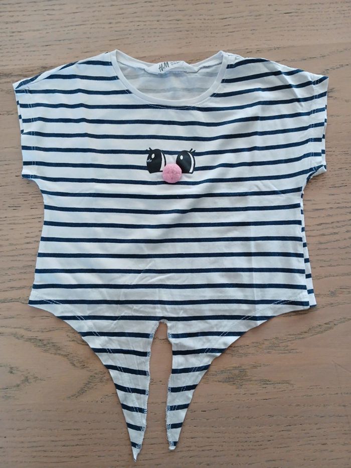 A rayures. Manches courtes. Lien à nouer à la taille.