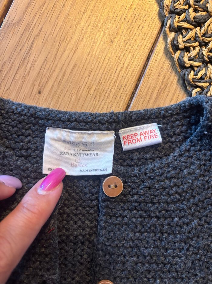 Gilet épais bon état comporte des mimis. Zara taille 9-12mois mais correspond plutôt à un 12-18mois