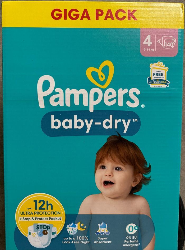 Giga pack Pampers Baby Dry taille 4 (140 couches). Carton neuf et scellé.