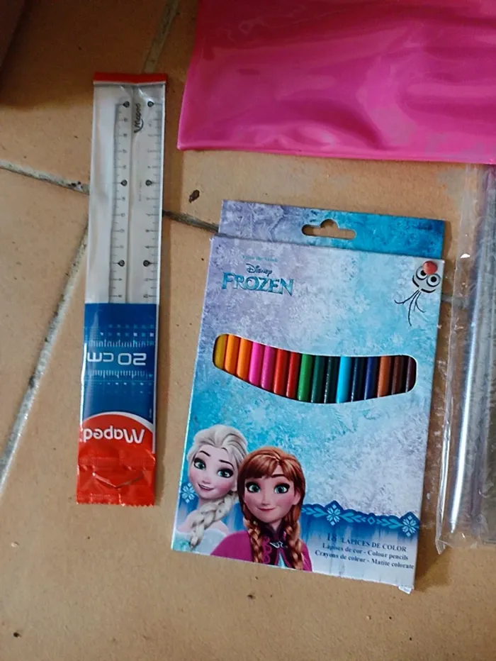 Lot complet 20 protege cahier transparent Crayon couleurs Trousse rose Regle maped 20 cl
