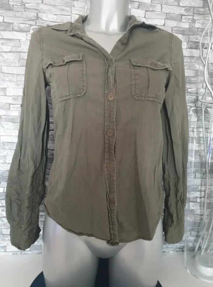 Chemise kaki H&M Taille 34 #chemisekaki #h&m34 #blousekaki #logg #chemisierkakixs #chemisierkaki34 #chemisierkaki #blouse #hautmancheslongueskaki #khakiblouse #blusacaqui #camicettacolorkaki #khakibluse