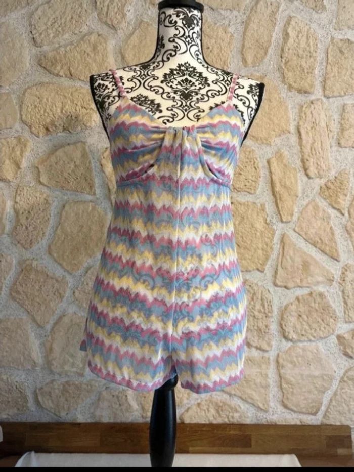 #vetementfemme_nouna86120 #tailleXS_nouna86120 💖 Ajoutez une touche de peps à votre garde-robe estivale ! Cette superbe combi signée Undiz est un concentré de fraîcheur et de bonne humeur. 👗 Description : • 🌟 Coupe : Courte et fluide, ultra confortable, idéale pour les journées chaudes ou à porter en sortie de plage. • 🎨 Motif : Joli motif zigzag multicolore aux teintes pastel (lavande, rose, jaune, bleu ciel) avec de délicats fils brillants pour une finition lumineuse. • 🎀 Détails : Fronces au niveau de la poitrine pour une touche féminine et un maintien délicat, avec fines bretelles. • 🧵 Matière : Maille légère, aérée et extensible, parfaite pour rester stylée sans transpirer. 📏 Taille : XS (convient aux silhouettes fines) 🏷️ Nom modèle : bibeachiz combi lavender ☀️ Que ce soit pour flâner à la maison, se détendre au bord de la piscine ou compléter un look estival décontracté, cette combi est votre alliée style incontournable !