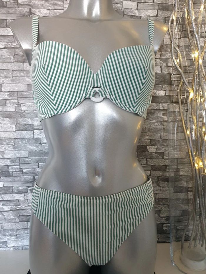 Maillot de bain rayé vert et blanc Taille bas 44 Taille haut 95C Neuf avec etiquette #maillotdebainsunshine595 #bikini #trajedebano #sexymaillotdebain #bonnet95C #taille44 #sexymaillot #swimsuit #vacances #piscine #costumedabagno #roupadebanho #zwempak #plage #playa #maillotdebain2pieces #sexybikini #vert #bonnet95c #bikinivert #maillotdebainbustier #maillotdebainrougesgorges #maillotdebainraye