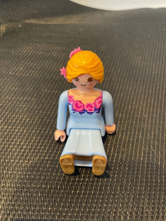 Playmobil figurine femme blonde robe bleue il en fleurs et accessoire cheveux - photo numéro 1