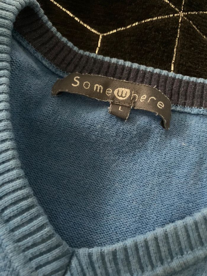 Pull bleu manches longues Col V Taille L #pulltaillel #hommecolv #pullhomme #somewherebleu #pullmen