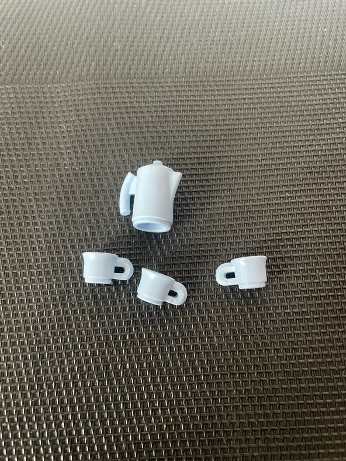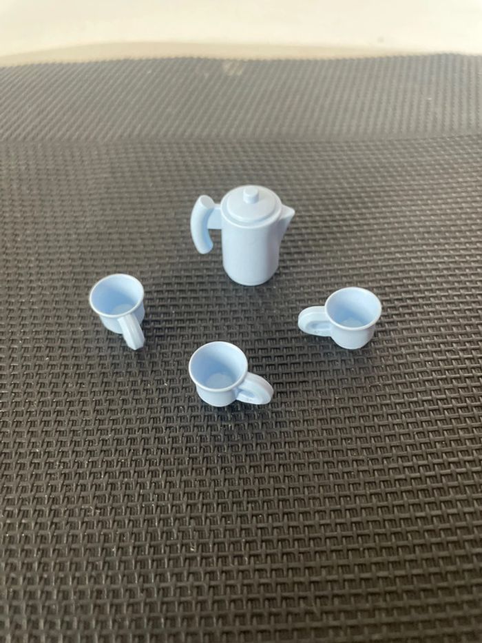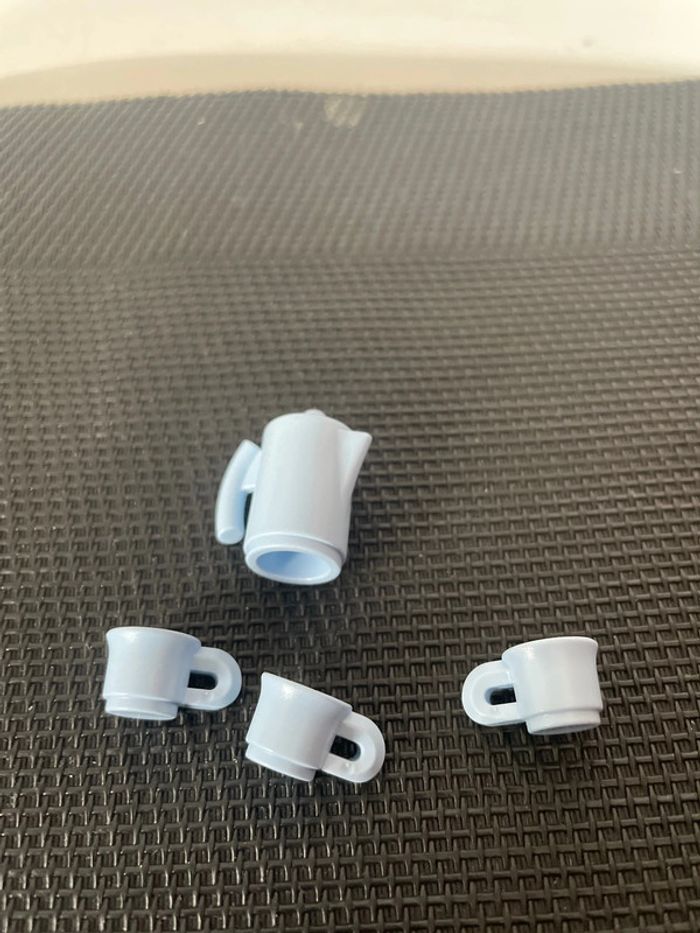 Playmobil lot vaisselle bleue claire 1 broc + 3 mugs tasses maison cuisine pièces détachées - photo numéro 3