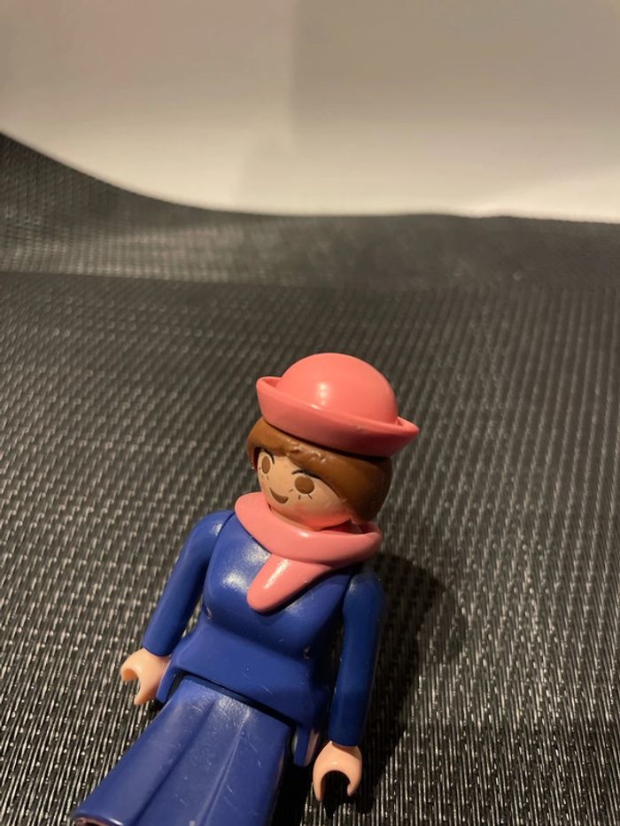 Attention : colis à partir de 5€. Playmobil figurine femme chignon écharpe et chapeau roses robe bleue 1900 belle époque. Bon état général, égratignure sur les cheveux, voir photos. Pour voir toutes mes annonces Playmobil, cliquez sur le lien suivant #playmobilbrocantegames #accessoires #piecesdetachees #piecesderechange #figure #personnage #figura #figurina #boneca #fille #diorama #collection #colección #city #citylife #viequotidienne #freestyle #cassecou #byciclette #bicicleta #rapaz #nino #parc #airedejeux #garoto #garota #niños #teenager #personnage #country #mamie #senior #epoquevictorienne