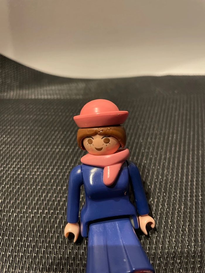 Playmobil figurine femme chignon écharpe et chapeau roses robe bleue 1900 belle époque - photo numéro 1