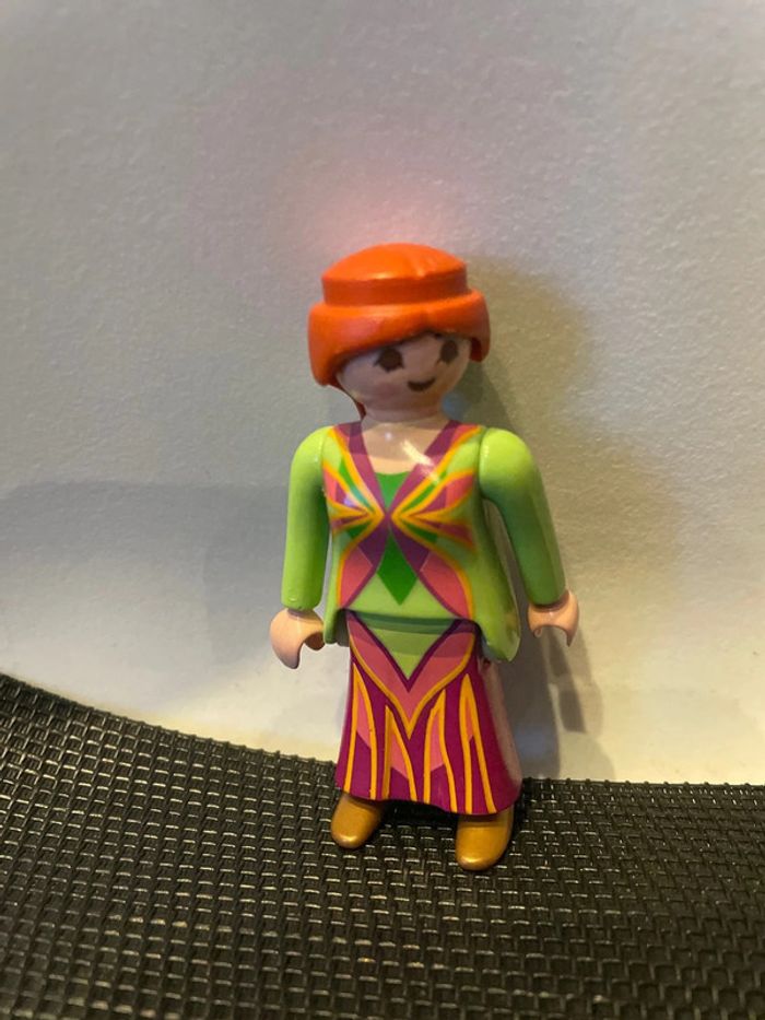 Playmobil figurine femme jupe mauve à motifs haut vert - photo numéro 1
