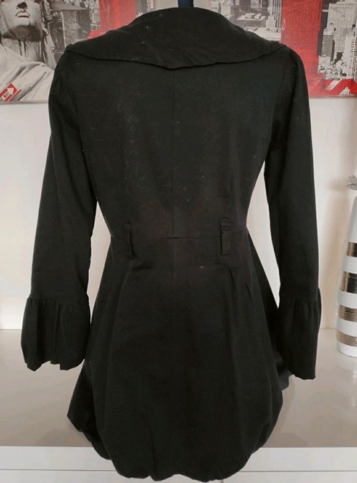 Manteau noir type trench Tres jolie decoupe athypique 2 vraies poches Tres bon etat Taille s ( pouvant convenir a un 38/40) #manteaunoir #trenchnoir #manteautailles #hiver #automnehiver #manteauleger