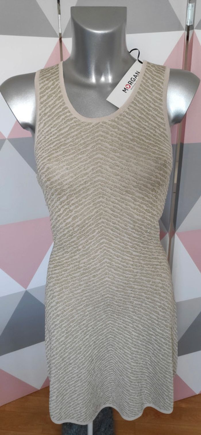 Tree jolie robe Morgan Beige avec fils pailletés Tres, tendance et sympa Longueur 85 cm Pour le boulot... Ou le resto 🤗 Neuve Taille S Longueur 98 cm #robechic morgantailles #robemorgan #morgan #chicdress #morgandress #vestidomorgan #vestitomorgan