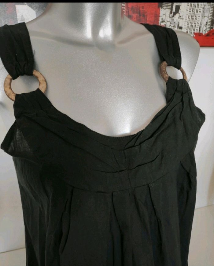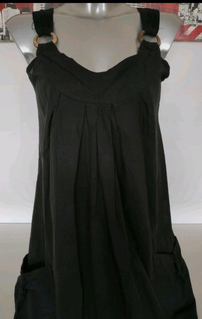 Tunique noire Jolie finition avec anneaux en bois, 2 vraies poches 100 % coton Tres bon etat #robetunique #tunique #tailles #robenoire
