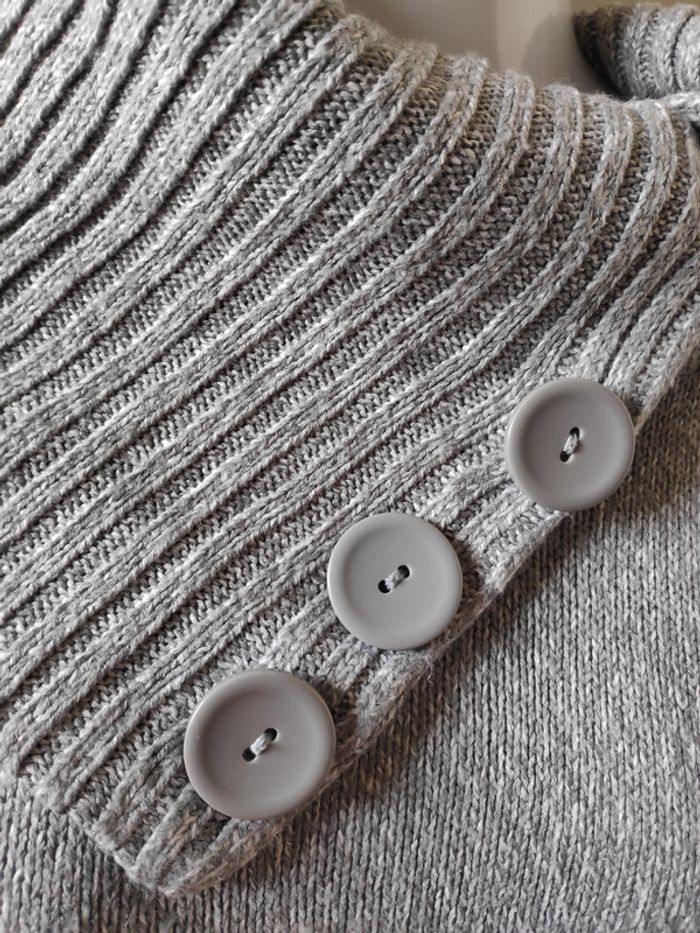 Pull gris avec gros boutons Taille xs 100% acrylique Bien chaud 1/2, saison et l hiver