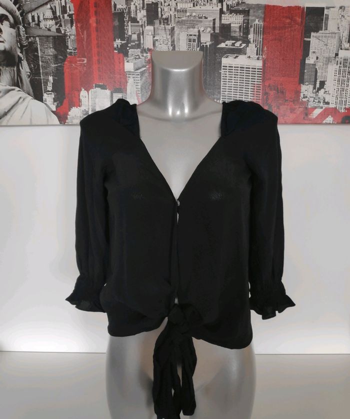 Tres joli chemisier noir Hyper sexy Fermeture 1 pressing sur le devant Noué sur le bas Taille 38 Neuf #chemisiernoir #blousenoir #sexyblouseblack #sexyblouse #blusasexy #chemisiertaille38