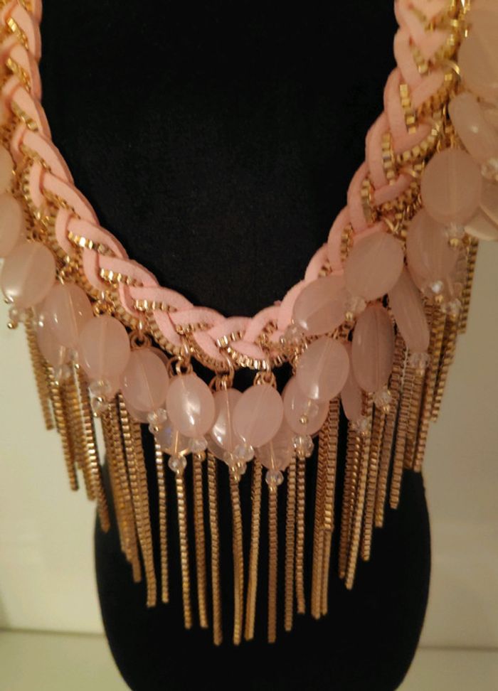 Tres Joli Collier au coloris nacré rose Neuf et emballé #collierfemme #collier #collierdesign #collar #necklace #collana #colliernacré #nacrérose