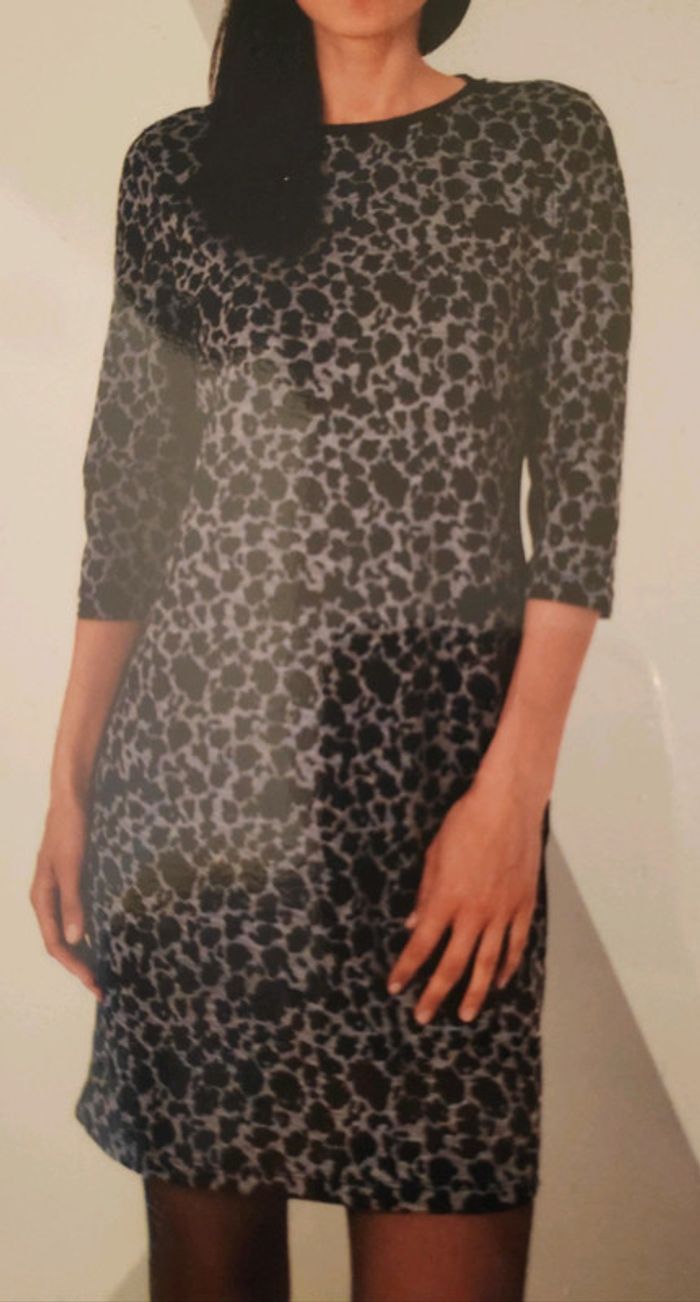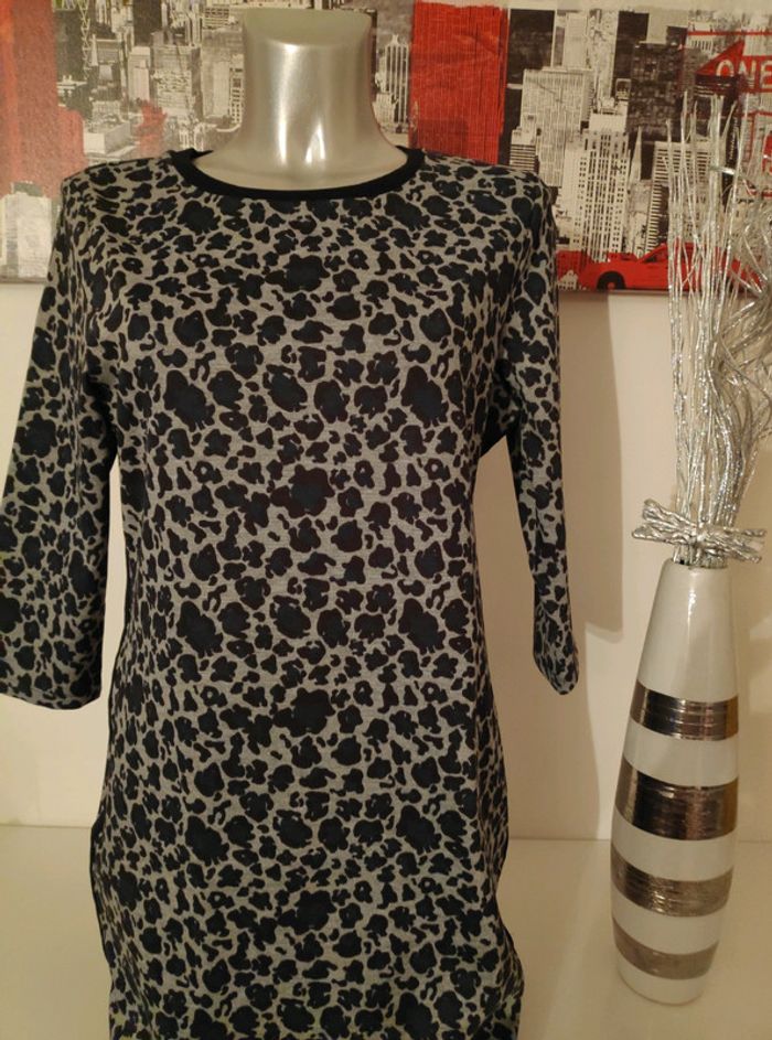 Robe tigrée Noire et grise/bleu Taille M Neuve avec etiquette Matiere 64 % polyester 33 % viscose 3 % elasthanne Manches 3/4 #robetigrée #robenoire #robeimprimée #vestidodetigre #tigerdress
