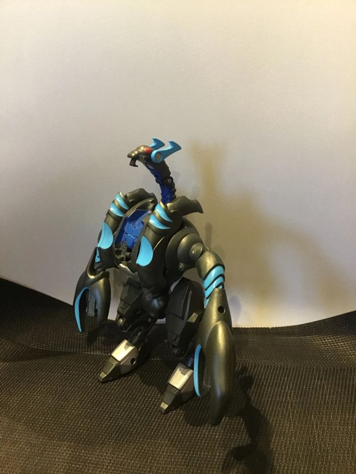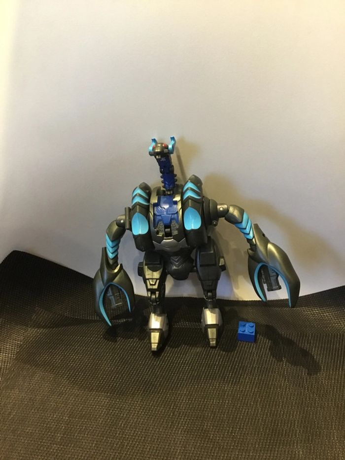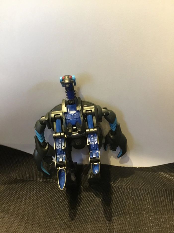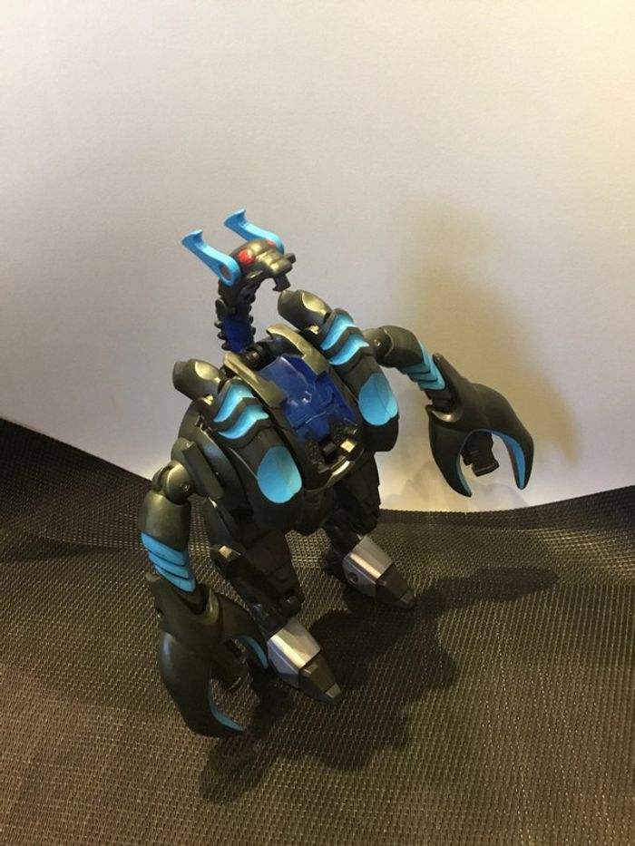 Figurine articulée Bakugan Mechtogan Titan Venexus 20cm robot. Bon état général, malgré traces d’utilisation. La tête et les pattes ne se ferment pas en même temps. Quand on ferme la tête, ça libère les pattes.