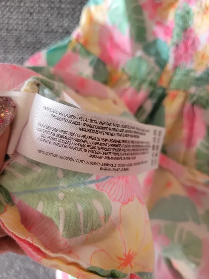 Robe pour fille de la marque Primark et de taille 4-5 ans 110 cm 100% coton Blanche à motif fleuri tropical A bretelles avec froufrous/volants Élastiquée dans le dos Aucune tâche ni trou #mabi38780fille4ans #mabi38780fille5ans