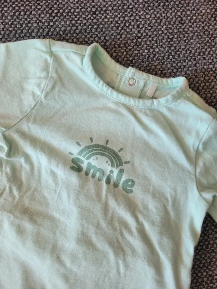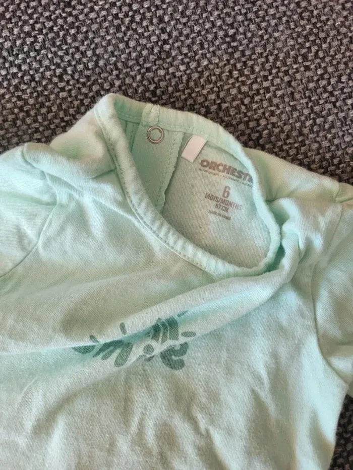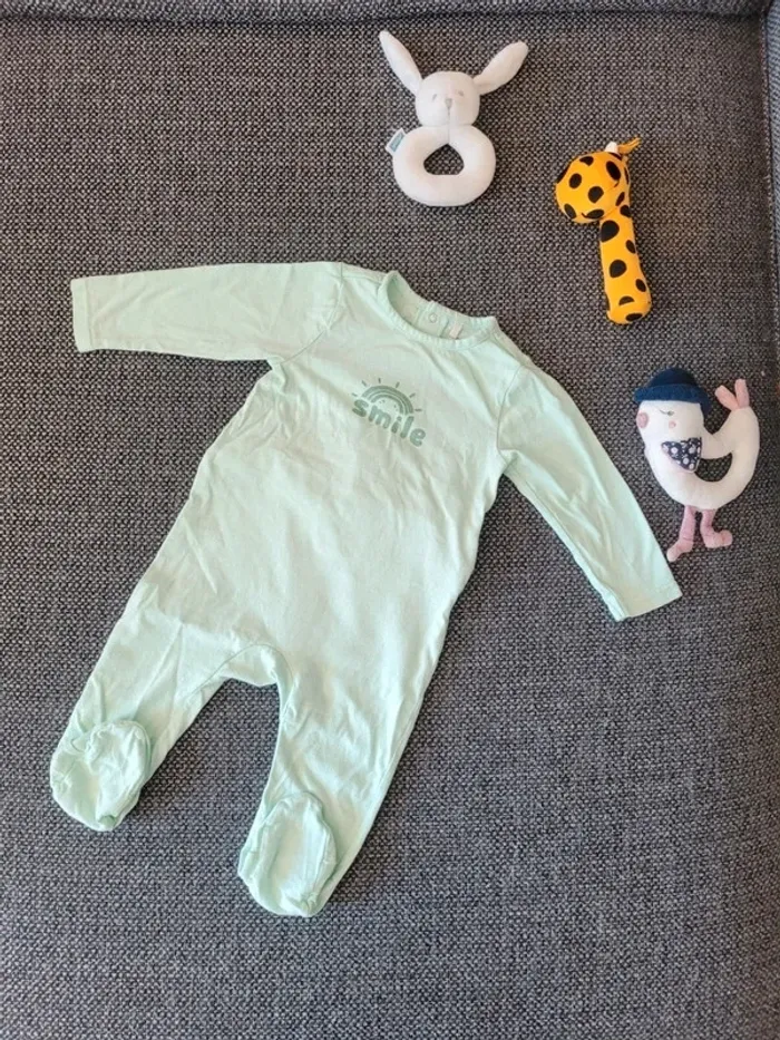 Pyjama garçon en coton de taille 6 mois et de la marque Orchestra Vert menthe à écriture "smile" et motif arc-en-ciel Aucune tâche ni trou #mabi38780garcon6mois