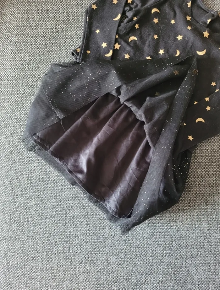 Robe à manches longues de taille 23 mois (équivalent 24 mois) et de la marque Ma Boutique Plus Couleur noire avec des motifs dorés lunes et étoiles Jupon en tulle volumineux à points dorés Idéale pour une cérémonie, halloween, un baptême, un anniversaire, un mariage ou au quotidien. Aucune tâche ni trou #mabi38780fille24mois