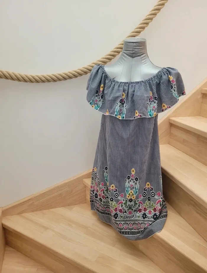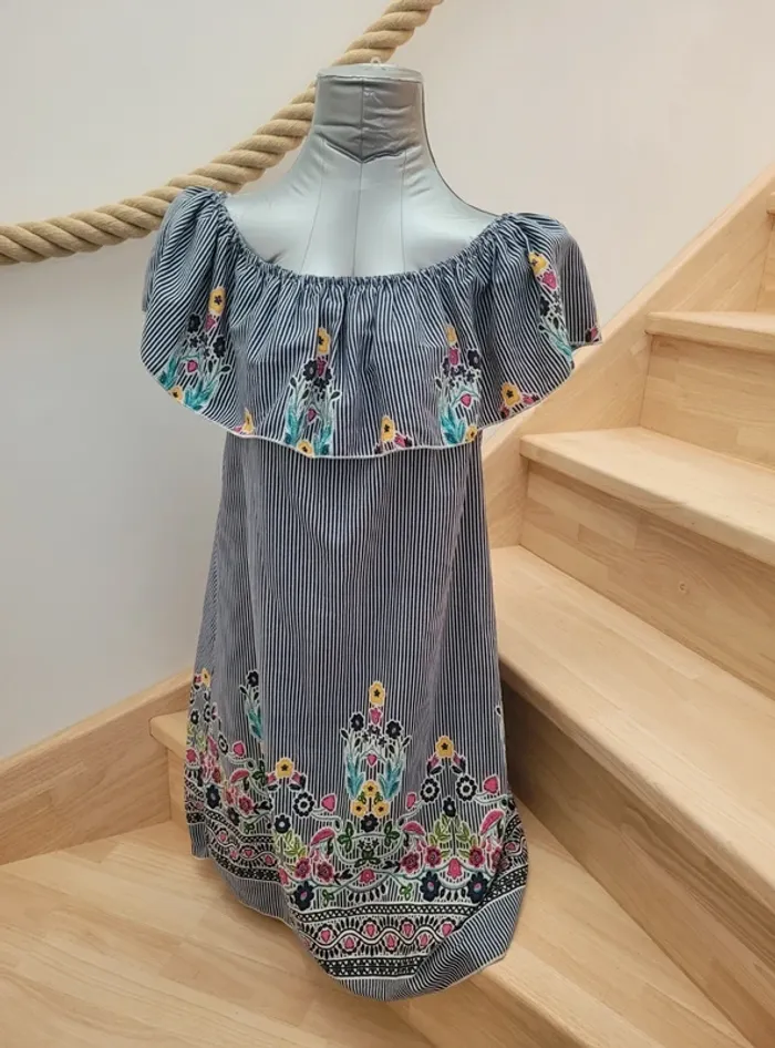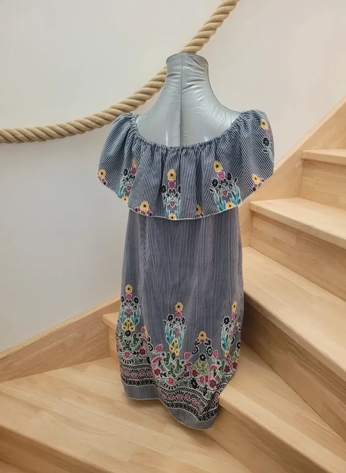 Robe sans manche de la marque L'Inconditionnel Paris et de taille 38 Haut volanté élastiqué pouvant être porté sur les épaules ou épaules dénudées Tissu bleu marine à rayures blanches et motifs fleuris colorés L'étiquette a été coupée mais il s'agit d'une taille 38 Aucune tâche ni trou. Juste un défaut au niveau de la couture en bas côté droit qui ne se voit pas une fois portée (voir photos) #mabi38780femme38 #mabi38780femmeM