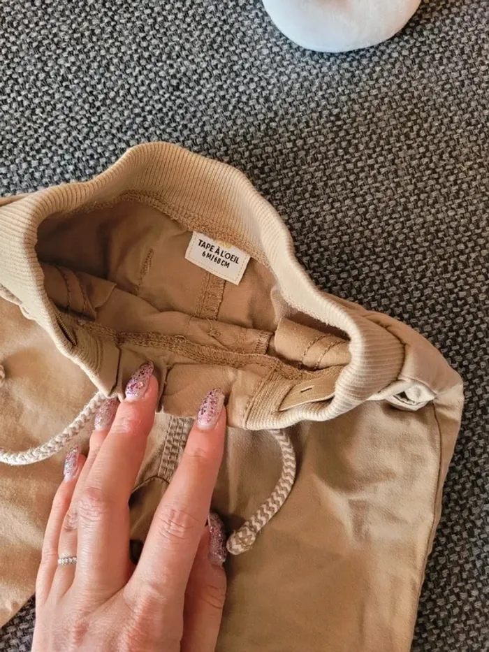 Pantalon pour garçon de taille 6 mois et de la marque Tape à l'œil (TAO) Type chino Taille élastiquée et ajustable avec un lacet décoratif Beige Aucune tâche ni trou #mabi38780garcon6mois