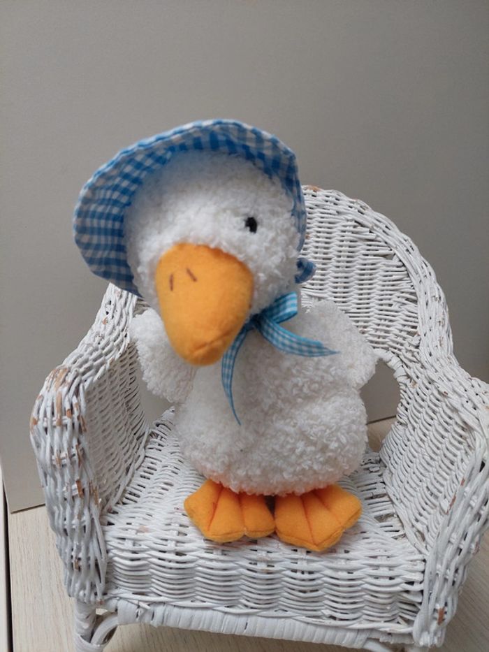 Peluche oie blanche et bonnet vichy bleu Nicotoy Hauteur 26cm La fonctionalité des lots étant disponible, n'hésitez pas à consulter le #lameredechine pour pouvoir facilement vous promener dans ma boutique.