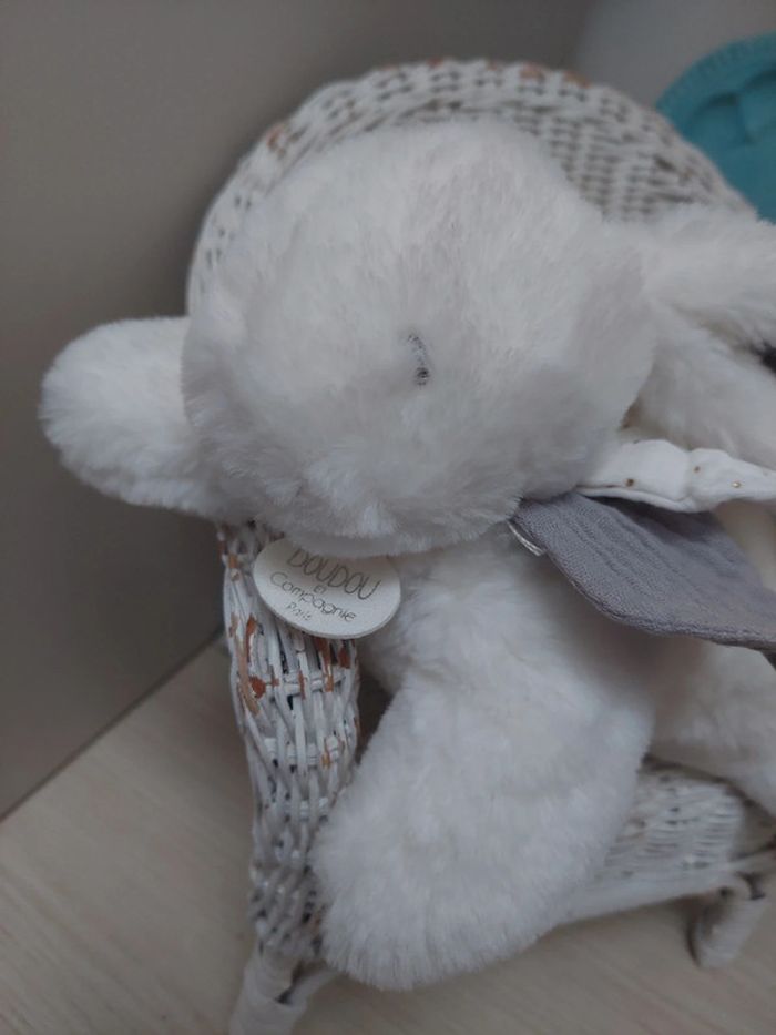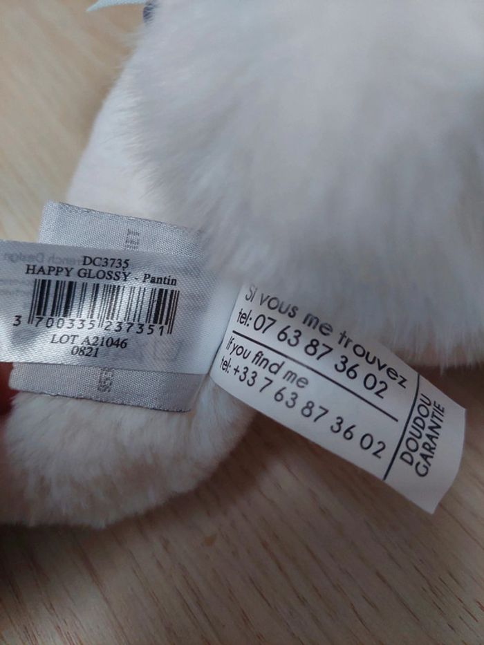 Doudou et compagnie - peluche lapin blanc happy glossy - photo numéro 3