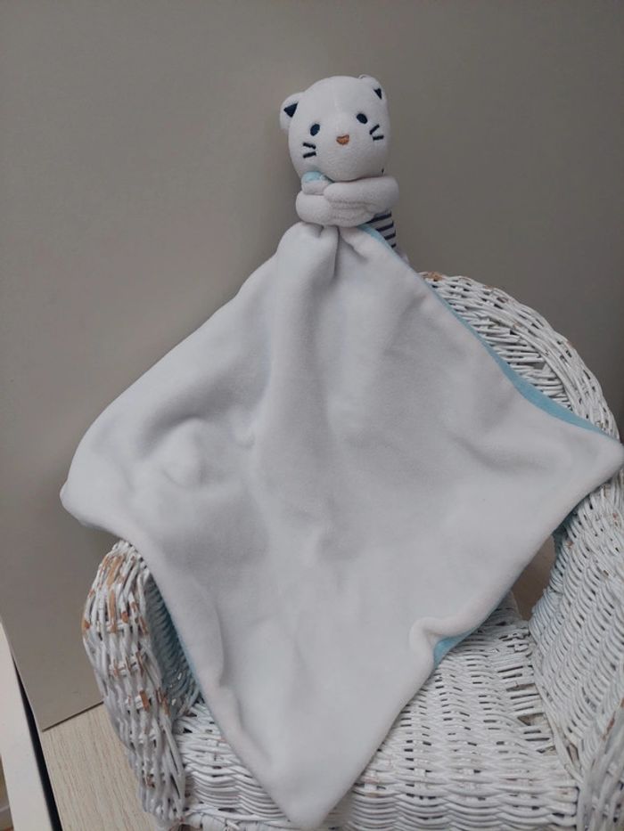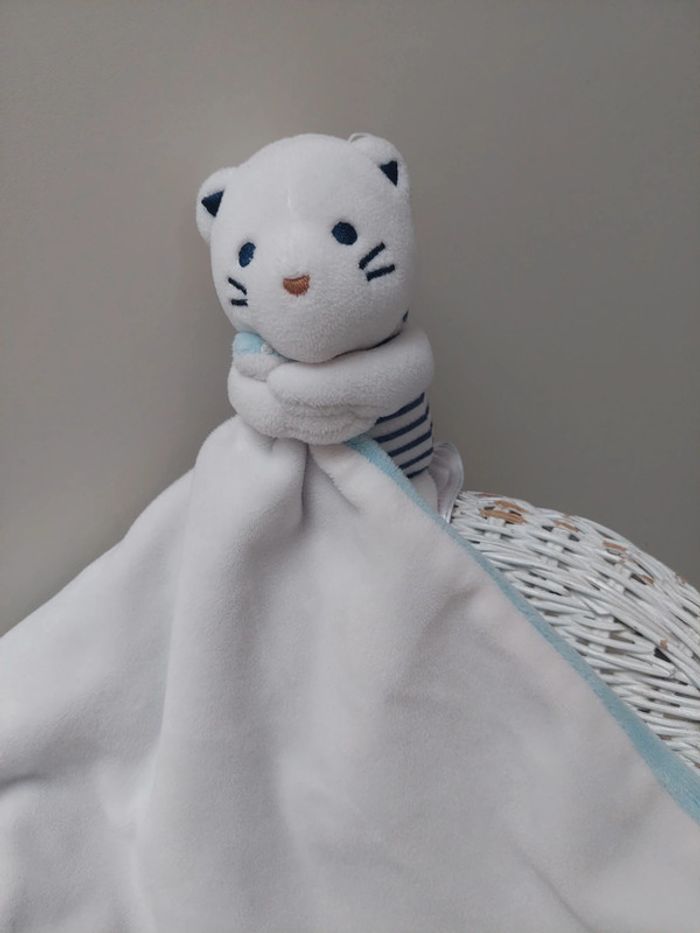 Doudou chat blanc bleu rayé mouchoir OBAIBI La fonctionalité des lots étant disponible, n'hésitez pas à consulter le #lameredechine pour pouvoir facilement vous promener dans ma boutique.