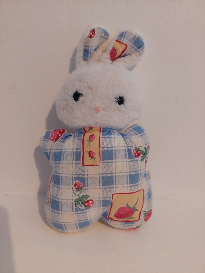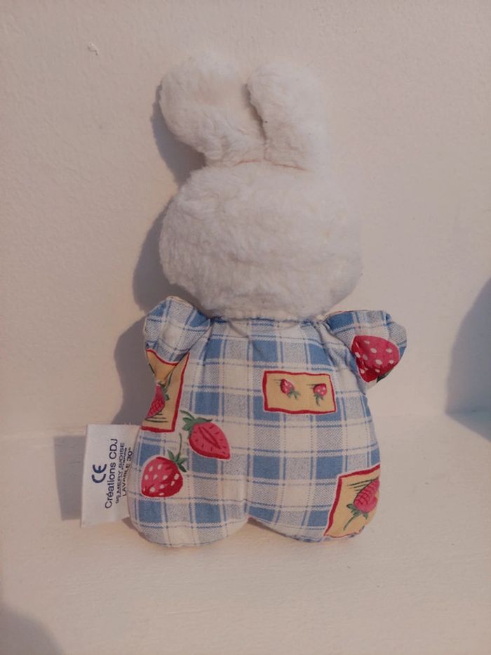 Petite peluche doudou lapin Le Petit Ours, créations CDJ Corps et oreilles vichy carreaux bleus et fraise Vintage avec grelot La fonctionalité des lots étant disponible, n'hésitez pas à consulter le #lameredechine pour pouvoir facilement vous promener dans ma boutique.