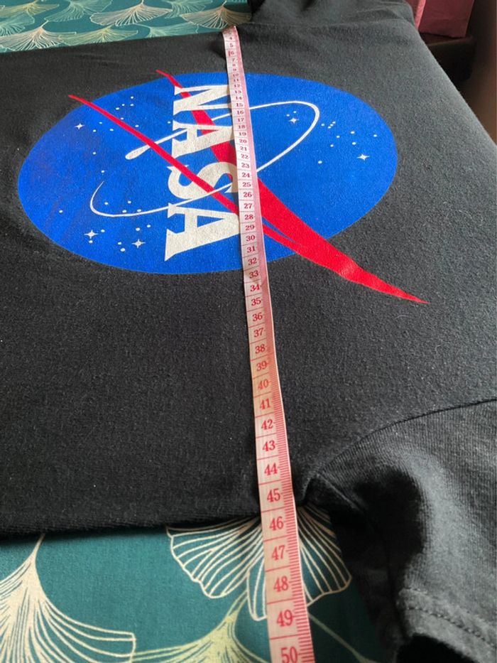 Taille S Très bon état (manque étiquette intérieure) T-shirt noir pour femme Nasa Flocage aspect vintage Composition : 100% coton Aisselle à aisselle : 45cm Épaule à épaule : 44cm Longueur : 67cm Les dimensions sont également présentes en photo Envoi rapide et soigné Vêtement lavé et repassé #tshirt #nasa #coton #black #usa #activewear #vintage #s #oversize #us #fan #apparel #imprimé #serigraphié